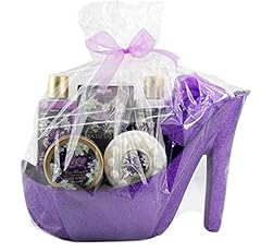 BRUBAKER Beautyset Lila Blütenzauber - Bade- und Duschset - 7 tlg. Geschenkset in Glitzer Stiletto