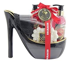 BRUBAKER Luxus Erdbeer und Kokosmilch Beautyset - 5 tlg. Bade Geschenkset in Keramik Stiletto Schwarz Gold