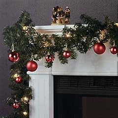 Wohaga Weihnachtsgirlande Tannengirlande Lichterkette 270cm 180 Spitzen 20 Lampen 16 Kugeln, Farbe:Rot