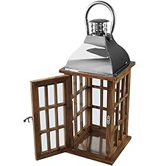 Wohaga Holzlaterne mit Metalldach 40x17x17cm Gartenlaterne Holzlaterne Windlicht mit Henkel Holzgestell Echtglasscheiben Kerzenhalter Gartenbeleuchtung Dekoration