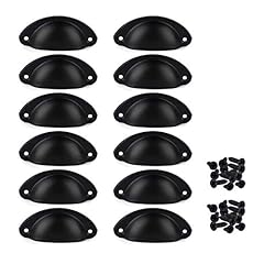 iDealhere 12 x Muschelgriff Schalengriff Ziehgriff Möbelgriff Schublade Eisen Handgriff Schrauben Set (Schwarz)