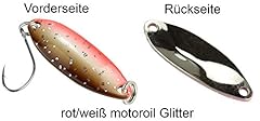 FTM Spoon Tango 1,8g - Forellenblinker zum Spinnfischen, Forellenköder zum Spinnangeln, Blinker für Forellen, Löffelblinker, Farbe:rot/weiß motoroil Glitter