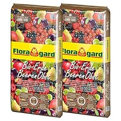Floragard Bio-Erde BeerenObst ohne Torf 2x20 L • Spezialerde mit Kompost • für Erdbeeren, Brombeeren, Stachelbeeren, Säulenobst • mit Bio-Dünger • aus natürlichen Rohstoffen • torffrei • 40 L