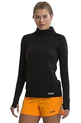 TCA Cloud Fleece Damen Thermo-Laufshirt mit Kragen & halbem Reißverschluss - Langarm - Schwarz, M