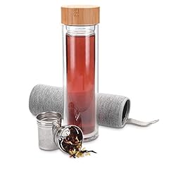 Navaris Teeflasche aus Glas mit Edelstahl Sieb - 500ml Tee Flasche Teekanne to go - Trinkflasche doppelwandig aus Borosilikatglas mit Hülle in Grau