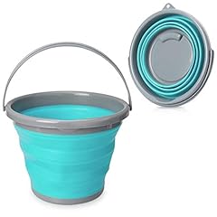 Navaris Falteimer Silikon Eimer faltbar - 10l Putzeimer für Reinigung Camping Angeln Küche - 10 Liter Haushaltseimer kompakt in Blau Grau
