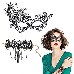 EQLEF® schwarze Spitze Masquerade Augenmaske mit justierbarem schwarzem Spitze-Armband für Halloween Cosplay Kostüm(maske+armband)