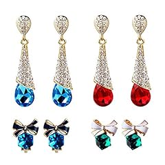 EQLEF Ohrstecker ohrclip kristall, Non Pierced Ohrringe Drop / Cubic Kristall Ohrstecker Clips Bogen für Damen auf Hochzeit und Freizeit Tragen (4 Paar)