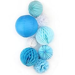 SUNBEAUTY 8er Set Tissue Papier Blume Pompom & Honeycomb Wabenball & Lampion Rosa Blau Serie Mixed Hochzeit Geburtstag Babyparty Dekoration (Blau)