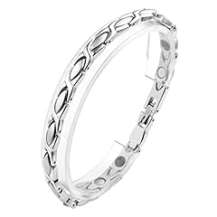 Zysta Schmuck Damen Edelstahl Armband Magnetarmband X Oliven Form Link Gesundheit Magnet Partnerarmbaender Damenarmband Armreif (Farbe:Silber)