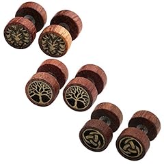 Zysta 4 Paare 1.2mm Sono Holz Ohrstecker Set Fake Herren Damen Ohrstecker Fake Tunnel Plug Cheater Illusion Baum des Lebens Tunnel Barbell Buchenholz Ebenholz Stud Ohrring Set (3 Paar)