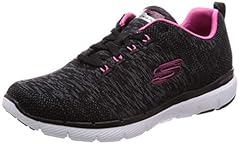 Skechers Damen Flex Appeal 3.0-13062 Sneaker, Schwarz (Black Knit Mesh/Hot Pink Trim BKHP), 39 EU