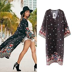 DAY.LIN Kleidung Damen Frau Lose Blumen Chiffon Kimono Übergroß Strickjacke mit Fringe Tüchern Halbarm Chiffon Long Kimono Cardigan Halbarm Chiffon Long Kimono Cardigan