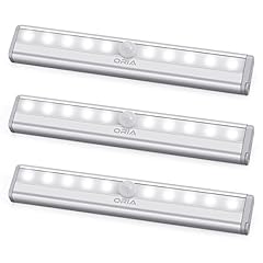 ORIA Schrankbeleuchtung Licht, 3er Pack Nachtlicht mit Bewegungsmelder Sensor Schrank Licht, Schranklampe mit 10 LED und Magnetstreifen, Auto ON/OFF Licht für Küche,Korridor - Weiße