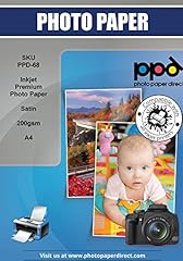 PPD DIN A4 Inkjet Fotopapier für Tintenstrahldrucker seidenglänzend satin seidenmatt schnelltrocknend wasserfest 200g, DIN A4 x 50 Blatt PPD-68-50