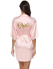 Aibrou Damen Kimono Morgenmantel Kurz Satin Robe Bademantel Nachtwäsche Sleepwear V Ausschnitt mit Gürtel für Party Hochzeit Braut Brautjungfern