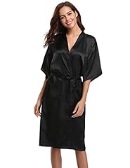 Aibrou Damen Satin Morgenmantel Kimono Lang Bademantel Schlafanzug Negligee Nachthemd Nachtwäsche Unterwäsche V Ausschnitt Mit Gürtel, Gr. S, Farbe: Schwarz