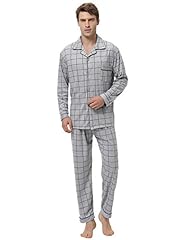 Aibrou Herren Baumwolle Pyjama Set, Winter Warm Langarm Zweiteiliger Schlafanzug, Langarm Shirt mit Hosen Grau M