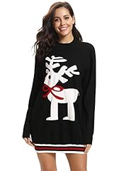 Aibrou Damen Weihnachten Rentier Pullover Rundhals Sweater Langer Stil Schwarz XL