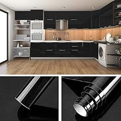 KINLO Folie Küche Schwarz 61x500cm aus hochwertigem PVC Aufkleber für Schrank Tapeten Küche Klebefolie Möbel wasserfest selbstklebende Folie Küchenschrank Küchenfolie Dekofolie MIT GLITZER