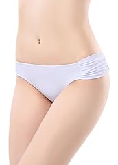 SHEKINI Damen Rüschen Bikinihose Wassersport Bikinislip Unifarben Gerafft Höschen Hipster (Large, Weiss)