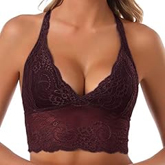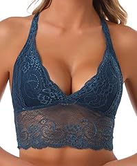 SHEKINI Damen Strappy Bra Sexy Blumen Spitzen BH Bralette Bustier Crop Top BH ohne Bügel Comfort Bra Racerback mit Abnehmbare Gepolstert Cup Elastisch Riemchen Dessous (L, blaugrün)