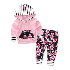 URSING Outfits Set Kapuzenhemd Pulloverhemd Hoodie Kapuzenpullover + Blumig Drucken Leggings Hosen Krabbelhose Jogginghose Baby Junge Mädchen Elegant Kindermode Schlafanzug (18M, Rosa)