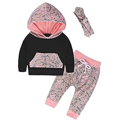 URSING 3PC Neugeborenes Infant Baby Mädchen Kleider Set Blumig Langarm Mit Kapuze Sweatshirt Tops + Blumen Hosen + Netter Bogen Stirnband Outfit Dreiteiligen Anzug