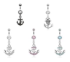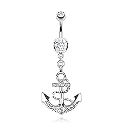 beyoutifulthings Bauch-nabelpiercing Anker 1,6mm 10mm Anhänger Nabel-Piercing Chirurgenstahl Bananabell Zirkonia Silber Clear Blau Pink Schwarz