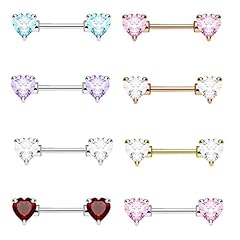 beyoutifulthings Brustwarzen-Piercing ZIRKONIA Herzen Brust-Piercing Intim-Piercing CHIRURGENSTAHL Silber Gold Roségold Stab 1,6mm 12/16mm