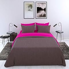 Bettwäsche-Set 2 Personen, 3-teilig, Zweifarbig (Pflaumerot-Elefantengrau), Erwachsene - Deckenbezug (200x200 cm) und 2 Kissenbezüge (80x80 cm) aus Weicher Baumwolle 57 Fäden - In Europa hergestellt