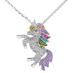 Naler Einhorn Halskette Charm Regenbogenfarben Anhänger Silbrige Kette mit schwarzer Samt-Schmuckschachtel
