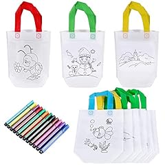 Goldge DIY Kinder Stoffbeutel Set,10 stück Tragetasche und 12 Kreidemarker Buntstift für Kinder, Kindergarten,DIY