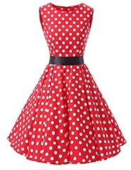 VKStar® 50er 60er Retro Kleider Damen mit Tupfen Abendkleid Vintage Damen Rockabilly Ballkleid Rot L