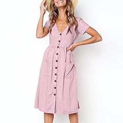 VEMOW Heißer Elegante Damen Frauen Urlaub Sommer Strand Casual Tägliche Tasche Solide Kurzarm Knöpfe Party Kleid Rock