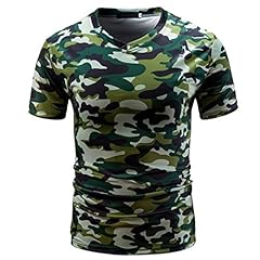 VEMOW Sommer Sport Männer Casual Camouflage Print V-Ausschnitt Pullover Kurz T-Shirt Top Bluse T-stücke Pulli(Grün, 58 DE / 2XL CN)