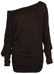Hot Hanger Damen Batwing Shirt Langarm Blusen Tunic Top EU Größe 36-54 : Farbe - Braun: Größe - 12-14 ML