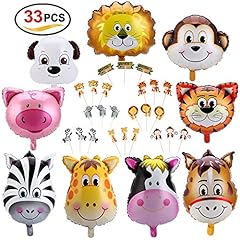 Konsait Tier Folienballon, 9 Stück Party Tier Luftballons Helium Ballons und Tier Torte Topper Cupcake Tortenstecker für Kinder Geburtstag Party Dekoration, 33 Stück