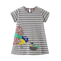 JERFER Kleinkind Baby Kind Mädchen Cartoon Vogel Stickerei Kleid Streifen Kleid Outfit Kleidung