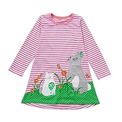JERFER Baby Kleinkind-Mädchen Langarm Herbst Karikatur Streifen Prinzessin Kleid 1-6T (3T, Rosa)