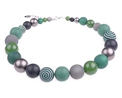 Adi Modeschmuck Halskette "Thabea", Elegante Materialmixkette aus Polaris- und verschiedenen Acrylperlen, dunkelgrün und Grautöne mit Akzenten in dunklem Silber, handgefertigt in Berlin
