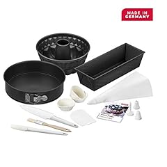 Kaiser Backformen Backset, 10-teilig, mit Springform, Königskuchenform, Bund-/Gugelhupfform, Spritzbeutel, Tüllen, Papierbackförmchen, Teigspachtel, Holz-Backpinsel, Torten-/ Kuchenmesser, Rezeptheft