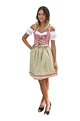 Golden Trachten Dirndl 3 TLG, Damen Midi Trachten-Kleid für Oktoberfest, Rosa Grün geblümt, 514GT (36)