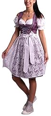 Golden Trachten-Kleid Dirndl Damen 3 TLG, Midi für Oktoberfest, mit Schürze und Bluse 486GT,Lila,36