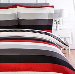 AmazonBasics - Bettwäsche-Set, Mikrofaser, 140 x 200 cm, Rot, schlicht gestreift