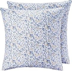 AmazonBasics - Kissenbezug, Mikrofaser Blau mit Blumenmuster- 2er-Set
