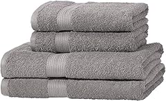 AmazonBasics Handtuch-Set, ausbleichsicher, 2 Badetücher und 2 Handtücher, Grau, 100% Baumwolle 500g/m²