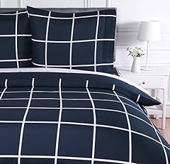 AmazonBasics - Bettwäsche-Set, Mikrofaser, 140 x 200 cm, Marineblau, schlichtes Karo