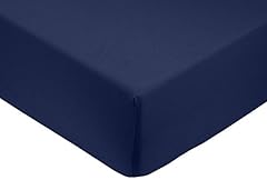 AmazonBasics Spannbetttuch, Baumwoll, Satin Fadenzahl 400, knitterarm, 140 x 200 x 30 cm - Marineblau
