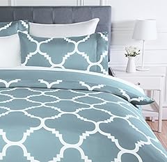 AmazonBasics - Bettwäsche-Set, Mikrofaser, 135 x 200 cm, Graublau, Gittermuster